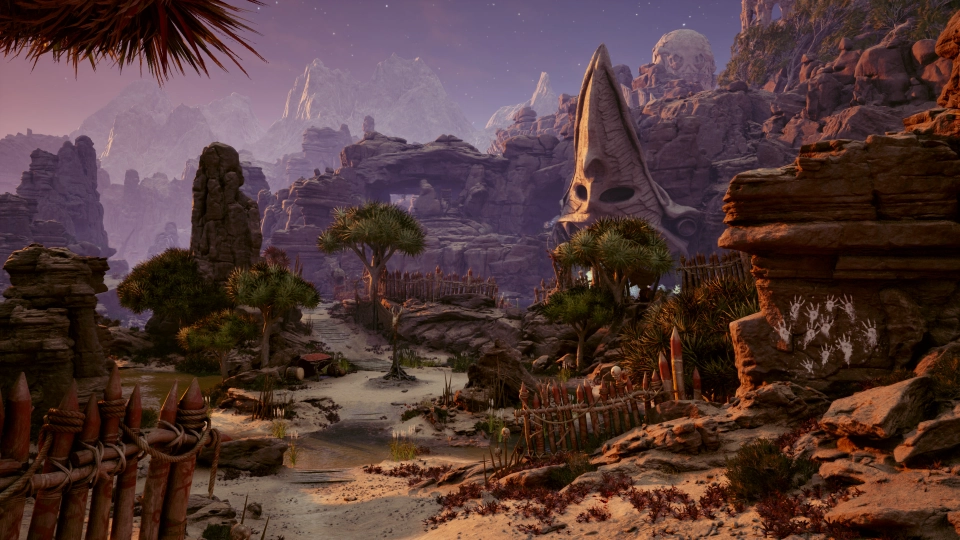 Avowed is een fantasy actie-RPG die zowel in eerste als derde persoon gespeeld kan worden. Het combineert magische spreuken met melee-gevechten in de weelderige fantasiewereld Eora. De Living Lands bieden een verscheidenheid aan omgevingen, van weelderige bossen tot dorre woestijnen en uitgestrekte grotten.