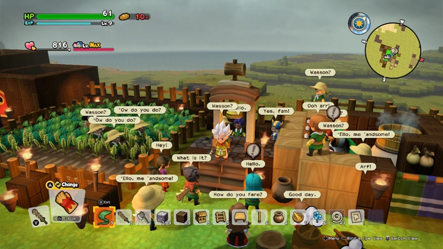 Ja, dit dacht ik wel vaak. En het antwoord op deze vraag is kort en bondig: nee. In Dragon Quest Builders 2 ben je nooit en te nimmer alleen. Waar ik ging, stond mijn NPC-kameraad Malroth altijd naast me. Hij ging nog net niet met me mee onder de douche. Fijn, zo'n krachtpatser naast me. Dan sta ik er tenminste niet alleen voor. Monsters in elkaar beuken doet hij maar al te graag en dat komt goed van pas, geloof me. Wanneer ik het dorp, de stad, of de boerderij bezocht die ik hielp, gunde Malroth me wel wat alleen tijd. Fijn, maar dan was ik nog steeds niet alleen. Er waren altijd bewoners om mij heen waarmee ik kon kletsen, of die iets van me nodig hadden, om de woonomstandigheden te verbeteren. Ja, ook de bewoners hadden vernomen dat ik het neefje ben van Bob de Bouwer en wisten dat ik veel kon fiksen. Een nieuwe keuken, badkamer of slaapplek. De verzoeken vlogen mij om de oren. En door al die kleine opdrachtjes van de bewoners had ik wel eens het gevoel dat ik Animal Crossing aan het spelen was, met een vleugje Sims. Wanneer ik een simpele opdracht voltooide van een bewoner, vierde iedereen feest. Alsof ik de Eiffeltoren in mijn eentje had gebouwd. Op zo'n moment komt iedereen samen en volgt er een staande ovatie. De vreugde is intens en de hartjes vliegen je als speler om de oren. Dit klinkt misschien stom, maar telkens weer kreeg ik er een warm gevoel van. Het motiveerde mij om nog meer werk te verzetten voor mijn dankbare vrienden. Misschien moeten we dit ook in het echt met elkaar afspreken?
