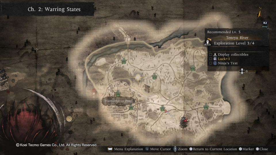 Voor degenen die niet bekend zijn met de Nioh games. In de eerste Nioh games kon je kiezen uit verschillende locaties op één van de mappen waar je uit een aantal missies kon kiezen. In de main missions kon je het hele veld verkennen en in de sub missions delen hiervan. Nioh 3 doet dit anders en geeft je een open wereld met aaneengesloten regio’s om te verkennen. In de demo kun je bijvoorbeeld Tenryu River, Rokaido en Hamamatsu verkennen en deze allemaal bezoeken zonder van missie hoeven te wisselen op de map. Het verkennen heeft dus een upgrade gekregen, al weet ik nog niet of de main missions je nieuwe verworven vrijheid kunnen beperken. In de velden kom je de bekende Shrines tegen waar je onder andere kunt levelen, Guardian Spirit wisselen, Soul Cores gebruiken, Kodama Blessings en Co-op modus kunt activeren. Ook zijn de bekende rode Revenants en blauwe Acolytes weer in de velden te vinden. Door het verslaan van de Revenants verdien je uitrusting en Ochoko Cups die je kunt gebruiken om de Acolytes te activeren die je tijdens de missie kunnen assisteren.
