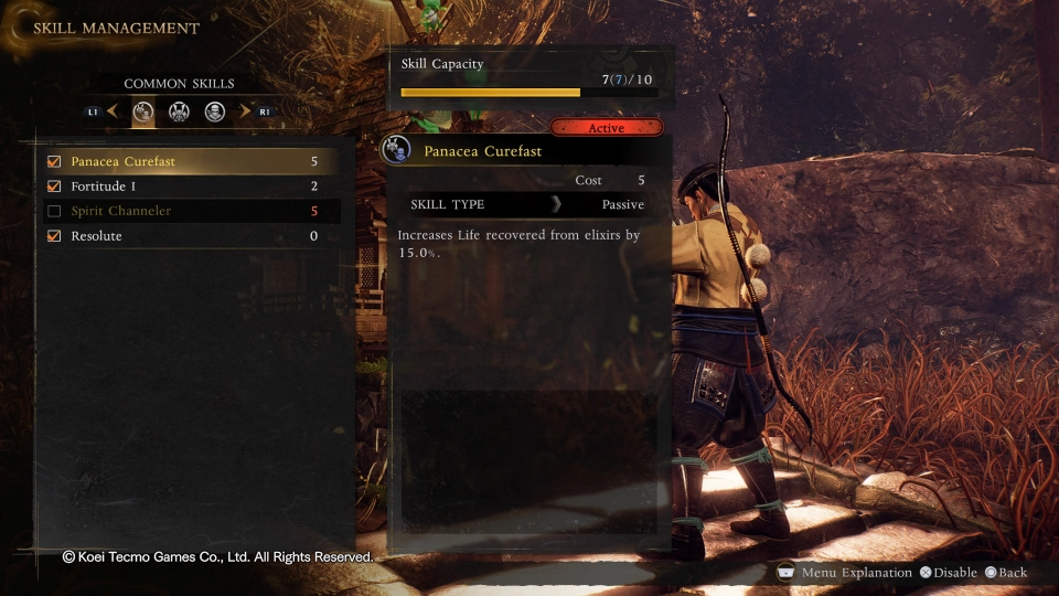 De aangeboden wereld in de demo is belachelijk groot en het is aan te raden om niet meteen naar de main mission marker te gaan, maar eerst de wereld te verkennen en wat ervaring op te doen. Zo kun je items en uitrusting zoeken, het tegen de vijanden opnemen, levelen, skills leren en de verschillende wapens en stijlen uitproberen. Zo krijg je soms side missions van de geesten die je tegenkomt en kun je enemy bases ontdoen van vijanden. Hierdoor krijg je toegang tot de schatkisten en kun je de verstopte Kodama vinden. Hiermee verdien je Kodama Merit points waardoor je van de Kodama Blessings gebruik kunt maken. Zo verhoog je bijvoorbeeld het aantal elixers of maak je ze sterker. De Blessings hebben een ander effect dan in de eerdere delen, maar dit houdt het fris. In de schatkisten vind je niet alleen items en uitrusting, maar soms ook Skill Scrolls die je bij de Shrines kunt inwisselen en activeren. Door enemy bases te voltooien, Mythes te onderzoeken, vijanden te verslaan bij Lesser Crucibles/Crucible Spikes, de regio te verkennen en met de vriendelijke Yokai (Kodama, Scampusses, Chijiko) te interacteren verhoog je per gebied het Exploration Level. Hierdoor verdien je items, verhoog je de base stats (Attack, Defense, Luck) en zorg je ervoor dat de verkenbare locaties en collectibles op de map zichtbaar worden.