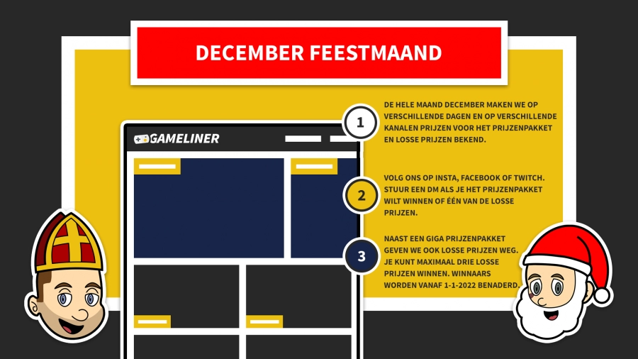 De december'feest'commissie van Gameliner heeft dit jaar wederom niet stilgezeten en heeft heel veel toffe prijzen geregeld bij onder andere Nintendo, Microsoft, OMEN en ga zo maar even door. Deze prijzen kunnen zomaar eens van jou worden.