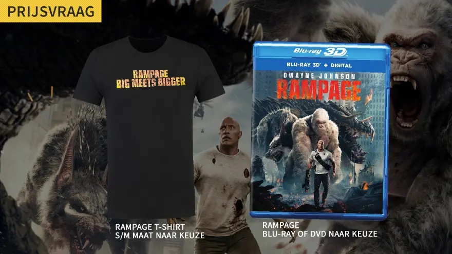Eerder gaven we een aantal lezers al de mogelijkheid om de film in de bios te checken, maar vanaf nu is het mogelijk om de film lekker vanaf de bank te checken. Nieuwe ronde, nieuwe kansen, want nu maak je kans om deze film voor Blu-ray of dvd plus een t-shirt te winnen! Het enige wat je daarvoor moet doen is hieronder en elders op de website (behalve op andere prijsvragen) een reactie achterlaten. De leukste reacties maken kans op een Blu-ray of dvd van Rampage en natuurlijk dat bijbehorende t-shirt.