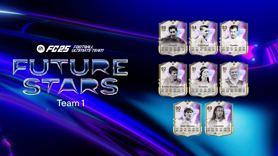 Het Future Stars Icons team bestaat uit legendes Lotta Schelin, Garrincha, Bobby Moore, Johan Cruyff, Lev Yashin, Xabi Alonso, Emilio Btragueno en Henrik Larsson. Ook niet de minste namen en ook hier is Nederland vertegenwoordigd. Vanaf vandaag kun je beginnen met het toevoegen van de jonge supertalenten. Alle Future Stars spelersitems krijgen een hogere beoordeling waarmee hun potentie om een topspeler te worden wordt onderstreept. Naast deze Future Stars komt er binnenkort voor iedere categorie nog een tweede Future Stars team.