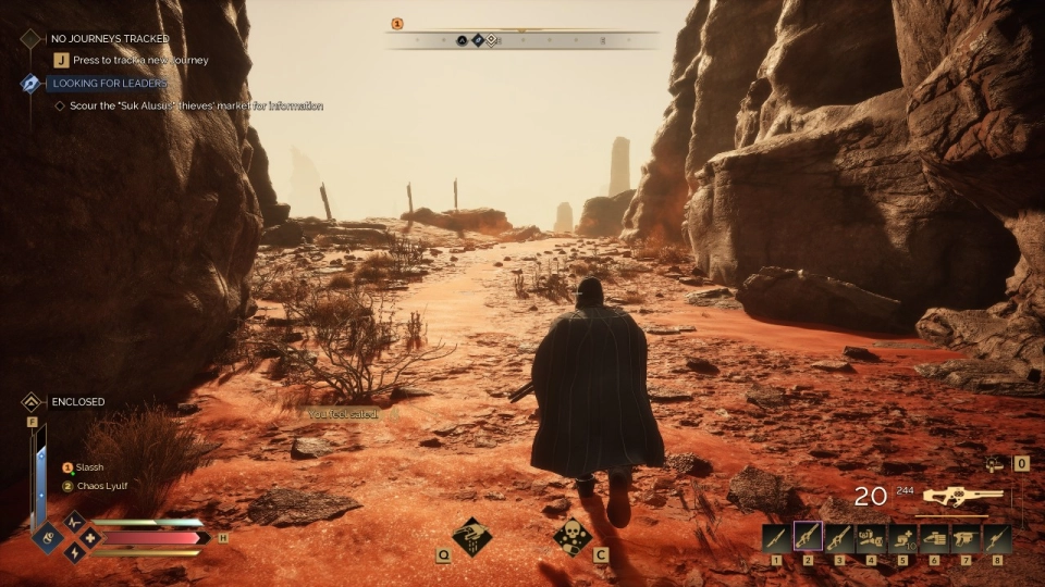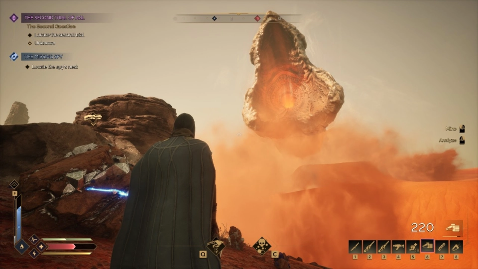 Dat is direct een mooi bruggetje naar de combat, want daar valt het een en ander over te vertellen. De eerste uren had ik er nogal moeite mee, omdat het niet bepaald vloeiend aanvoelt. Dit merk je vooral als je besluit om met een mes of zwaard een vijand aan te vallen. Dit ben je verplicht, want schilden kun je alleen met een zwaard doorbreken, totdat je een disruptor pistol maakt. Je moet vooral de aanval van de vijand afwachten om daarna te reageren, maar als er veel vijanden om je heen staan heb je een probleem. Tenzij je hebt besloten om direct een Swordmaster te worden, want dan heb je enkele handige passieve en actieve abilities tot je beschikking. Vanaf een lange afstand vechten had al snel mijn voorkeur en dat paste ook goed bij mijn Mentat training. Ik heb namelijk toegang tot een turret die vijanden voor mij neerschiet, een schild waar ik achter kan schuilen en een gifgranaat. Dankzij de actieve abilites is het mogelijk om meerdere strategieën in te zetten, maar ook hier geldt dat je na enkele uren al snel in herhaling valt. Het schieten voelt echter wel een stuk beter aan dan de melée -combat en vooral het sluipschuttersgeweer is handig om in alle rust te gebruiken. Toch heb ik games gespeeld waar de gunplay een stuk beter aanvoelde. Voor een game waarin combat een grote rol speelt en waar je in de endgame zelfs met andere spelers moet vechten, had dit beter in elkaar kunnen steken. De vijanden reageren wel op jouw handelingen. Ze zullen dus een schild activeren of proberen om zichzelf met een healthkit te genezen. De NPC’s zijn dus niet dom en vijandelijke fracties zullen elkaar ook bestoken.