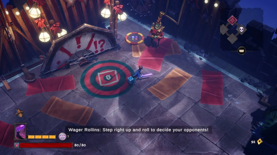 Lost in Random: The Eternal Die vertelt een verhaal in delen, maar het is hierdoor lastig om een band met Aleksandra te vormen. Je krijgt wel dingen mee door met de NPC’s te praten en kunt alle informatie nalezen, maar dit deed het verhaal niet meer tot leven komen. De pittige en uitdagende gevechten houden je scherp en de toevoeging van meerdere wapens geeft de game replay value. Dit geldt zeker voor de extra skills die je met de Relics kunt activeren en de stats boosts door drie van dezelfde kleur naast elkaar te plaatsen. Hierdoor moet je altijd goed blijven opletten wat het beste bij jouw run past. De bonusvelden, obstakelkamers en NPC-kamers zorgen voor genoeg afwisseling tussen de vijanden door. Lost in Random: The Eternal Die biedt genoeg actie en afwisseling. Hierdoor is de gameplayloop tot zover erg verslavend.