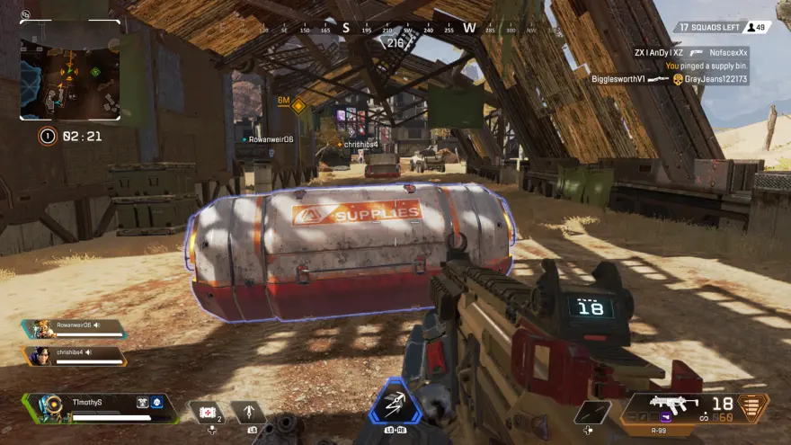 Hoewel de besturing dus hoofdzakelijk goed verloopt, is er op de balans wel wat aan te merken. Voorbeelden: shotguns zijn echt overpowered, niet normaal. Het feit dat je heel weinig munitie krijgt voor met name assault rifles bij het oppikken, zorgt ervoor dat je snel door je kogels heen bent en dus machteloos bent. Pistolen werken prima, maar leggen het af tijdens de hectische gevechten en soms heb je echt niet door waarvandaan je onder vuur wordt genomen en kan je verrassend snel het loodje leggen. De balans kan dus echt nog geoptimaliseerd worden. De unieke vaardigheden maken het verschil, hoewel sommige meer tof zijn dan echt nuttig. Zo vond ik Wraith met haar Interdimensional Ability nogal als een gimmick aanvoelen. Maar, wellicht is het oefening baart kunst om deze vaardigheid tot zijn recht te laten komen en is het meer mijn beperking hoe ik zelf speel. Wat erg goed werkt en superslim is gevonden, is de mogelijkheid om met de rechter schouderknop een item of plaats te markeren, het zogenaamde Ping-systeem. Voor de mensen zonder een headset is dit een uitkomst, omdat je op een hele snelle en intuïtieve manier duidelijk kan maken wat je wil, waar je naartoe wil gaan of interessante items voor je team kan markeren. Dat dit niet eerder is toegepast, besef je maar hoe goed Respawn online shooters begrijpt.