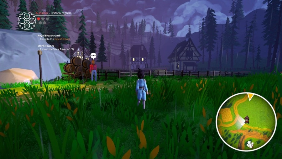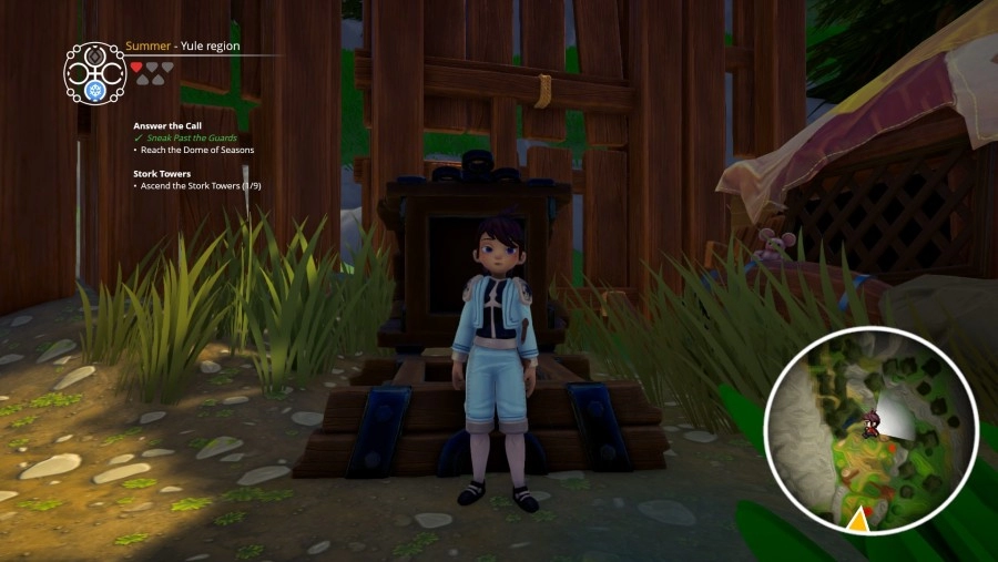 De wereld van Valdi straalt een kalmte en rust uit, omdat de seizoenen altijd gebonden waren aan de gebieden. Hier komt met het verhaal verandering in, waardoor de mensen niet altijd even blij zijn. Een aantal van de Side Quests zijn dan ook gebonden aan de wisseling van de seizoenen. Het verhaal van Ary and the Secret of Seasons heeft veel humor en die kom je ook tegen bij de Side Quests. Als je geen zin hebt om de Side Quests te doen, kun je eenvoudig zeggen dat je geen tijd hebt. Toch zijn deze Side Quests nuttig voor de muntstukken die je krijgt. Hoewel de wereld van Valdi er kleurrijk uitziet, is de wereld wel wat aan de lege kant. De kisten en verzamelvoorwerpen zijn een leuke toevoeging, maar ik had toch wat meer interactie willen zien in de wereld. De reden daarvoor is dat het een interessante wereld is en ik die graag meer had willen verkennen. Daarbij moet wel rekening gehouden worden dat Ary and the Secret of Seasons een indie-game is. Dit merk je ook aan de animaties van de mensen in de wereld. Een groot gedeelte van de mensen zijn wel bezig met hun dagelijkste taken, waardoor je ze achter kraampjes ziet staan of ze juist op het strand zitten om te genieten van het nieuwe weer. Je kunt helaas niet met iedereen praten, want dit wordt aangegeven door het typerende stripwolkje.