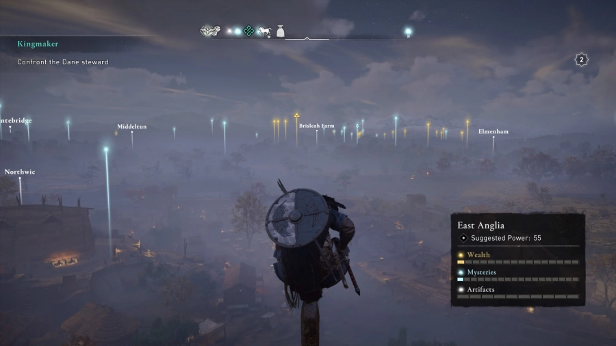 Op je hoofdkwartier kun je op de kaart van Engeland een graafschap selecteren om hier je invloed uit te gaan oefenen door een rechtvaardige hervormer bij te staan en uiteindelijk een verbond te bewerkstelligen. Zo heeft elk graafschap zijn eigen insteek en een persoon die je moet assisteren om hem of haar aan de macht te helpen om je eigen positie in het land te versterken. Zo word je een koningsmaker, moet je een verrader vinden of een rechtvaardige gezagdrager bijstaan om de onzuivere elementen uit te schakelen. Het is mogelijk om te kiezen welke weg je neemt; ga je eerst je halfbroer helpen of is het verstandig om eerst een andere alliantie te bewerkstelligen. Natuurlijk moet je beide doen, maar je kunt je verovering van Engeland invullen zoals je zelf wilt. Ook kun je met je crew raids uitvoeren op kloosters of vijandelijke kampen om je settlement uit te breiden en je reputatie op te bouwen. Door je settlement uit te breiden willen meer mensen hier gaan wonen en krijg je toegang tot meer quests. Zo kun je onder andere een hut voor de jagers bouwen, een soort museum en een afdeling van de Hidden Ones creëren die uiteindelijk hun eigen beloningen opleveren. Dus je kunt op jacht gaan naar de legendarische dieren, de romeinse schatten en natuurlijk de leden van The Order. In het verhaal zitten soms momenten waarbij je een keuze moet maken. Volg je het recht van de christelijke Engelse bewoners of hou je je aan je traditionele (bloedige) gebruiken uit je eigen traditie. Of dit invloed heeft op het verloop van het verhaal of het einde, is mij nog niet bekend.