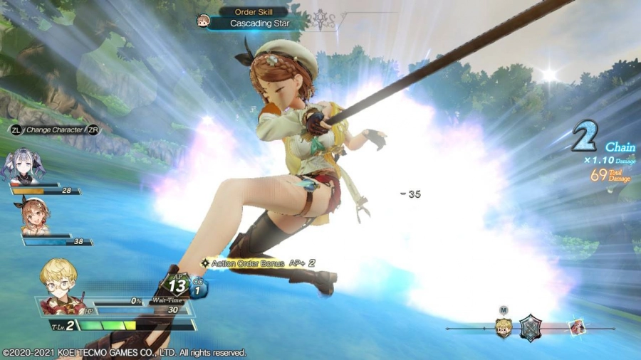 Dankzij de tutorials kon ik rustig wennen aan het gevecht en alchemisten-systeem in de game. Atelier Ryza 2 heeft een fijn vechtsysteem. Je bestuurt één personage in je party en kan de rest van je party beïnvloeden door ze alleen normale aanvallen te laten uitvoeren met de Support-modus of hun speciale aanvallen met de Agressive-modus. Met normale aanvallen verdien je AC die je kan inzetten om speciale aanvallen uit te voeren. Je party members vragen ook soms om een speciale aanval uit te voeren, zodat ze een chain attack kunnen doen. Dit alles gaat vrij soepel en zorgde ervoor dat ik mij aardig in combat vermaakte.