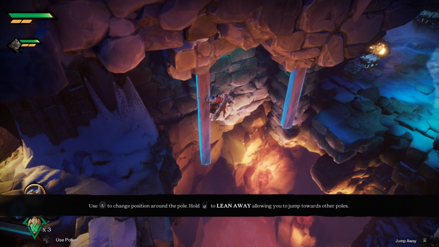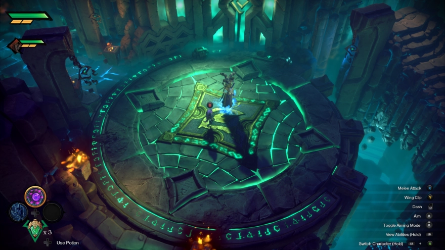 De drie originele Darksiders-games zijn third-person actiegames waarbij je middels een lichte aanval, een zware aanval en een aantal andere speciale vaardigheden hordes vijanden moet verslaan. In Darksiders Genesis is dat precies hetzelfde. Aanvankelijk dacht ik, aan de trailers te zien, dat Darksiders Genesis meer weg zou hebben van een Diablo-achtige game of een dungeoncrawler, gezien het nieuwe isometrische perspectief van de game. Na het spelen merkte ik echter dat de gameplay eigenlijk precies hetzelfde is gebleven als in de vorige Darksiders. Ook heeft Darksiders eigenlijk niet veel weg van een dungeoncrawler. Zo ben je niet constant loot aan het verzamelen en je personage verder aan het upgraden, maar loop je eigenlijk gewoon constant door lineaire dungeons heen om op zoek te gaan naar een artefact dat je moet verzamelen. Tussendoor wordt alle actie wel afgewisseld met puzzels en platform-stukjes waarbij je moet rennen en springen. Daarnaast krijg je tussen elk hoofdstuk ook de mogelijkheid om The Void te bezoeken, waar het bekende personage Vulgrim je opwacht. Bij Vulgrim kun je de zielen die je gedurende je avontuur verzamelt, inruilen voor upgrades en nieuwe handige vaardigheden.