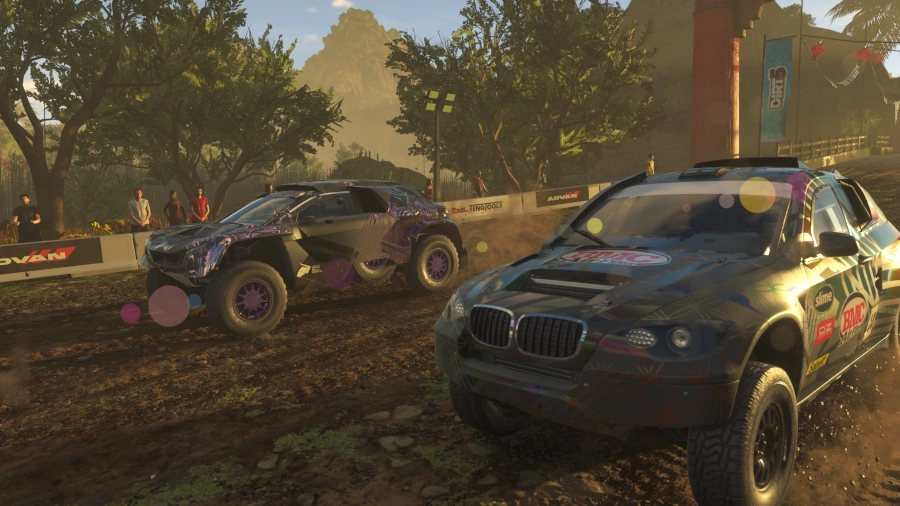 DiRT 5 werd natuurlijk gepromoot als dé next gen titel als het gaat om racing. De game ziet er op momenten geweldig uit. Ja, momenten. DiRT 5 kan het ene moment er geweldig uitzien en dan vooral als de track zich bevindt in een regenstorm. Ook een laaghangende zon werkt wonderen voor de racegame. Wat ik hiermee bedoel, is dat de belichting in de game een beetje kapot is. Tenminste, dat lijkt zo. Wanneer alles goed staat, dan ziet de game er prachtig uit, zeker met de geweldige omgevingen. Het zijn echter de details die de game af en toe even een schop geven als het gaat om grafische presentatie. Zo ziet het publiek eruit alsof ze direct uit Zoo Tycoon 1 zijn geknipt en geplakt. Gelukkig heeft dat niet zoveel impact op je raceplezier. De textures in de game halen je wel wat uit de ervaring. Zo kan de grond er kwalitatief minder goed uitzien en hebben bepaalde objecten, zoals de banden, af en toe last van slechte textures. Is dit een effect omdat ik op de performance-modus speel? Of zijn dit wellicht de offers die gemaakt zijn om die felbegeerde 120 fps te halen op de Xbox Series en PlayStation 5? We gaan het zien. Weet in ieder geval dat de grafische presentatie op de huidige consoles niet slecht is, maar ook wat steken laat vallen.