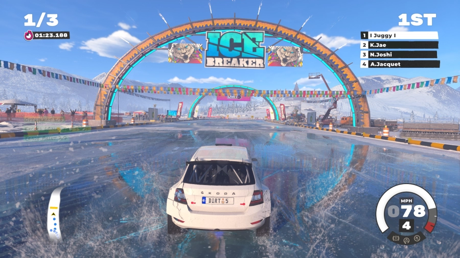 Wat enigszins jammer is, want de game kan echt een grafisch toppertje worden. Als deze problemen namelijk wegvallen bij de Xbox Series en PlayStation 5, dan heb je een game die er zo goed uit ziet als Forza Horizon 4. De gehele game spat namelijk met kleur. In de menu's zie je dat terug en bij alles wat te maken heeft met customization. Elke kleur wordt benut en dit zorgt voor een aangename presentatie. Niet alleen de menu's en logos zitten er vol mee trouwens. In de races zelf, naast de levendige wagens, wordt er vaak gebruikt gemaakt van vuurwerk, vliegtuigen en meer om die presentatie nog een extra boost te geven. Aangezien de belichting in de game soms voor geweldige zichten zorgt, kan dit mooi uitpakken. Ik ben ook zeer onder de indruk van de particle effects. Elke omgeving brengt een nieuw effect met zich mee en het is mooi om te zien hoe dat impact heeft op je vervoermiddel. Zo kunnen die oranjebruine woestijnen je auto onder het zand bedelven, terwijl je de modder van het regenwoud ook op de achterkant van je auto ziet spatten. Gepaard met het uitstekende audiodesign en een hele toffe playlist aan muziek, scoort het uiteindelijke een dikke voldoende voor de algemene presentatie. Wat is er nou beter dan met 285 pk je motor laten schreeuwen door de besneeuwde bergen van Nepal? Niet veel, lijkt mij.