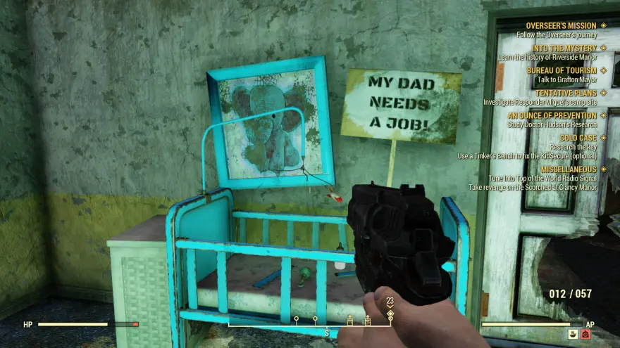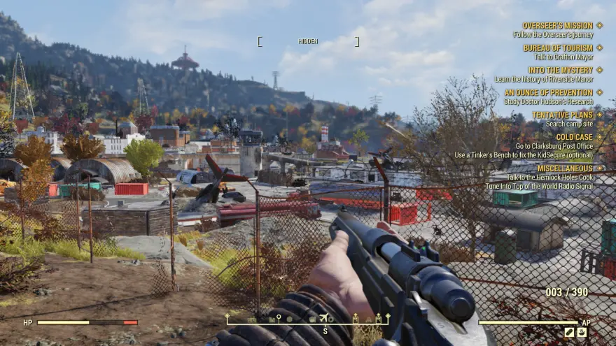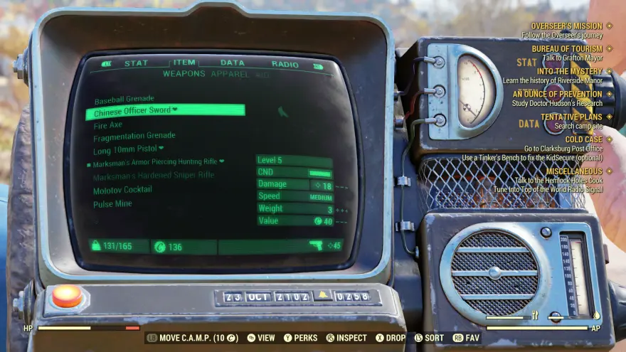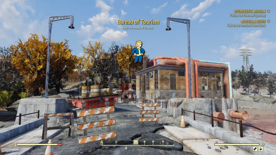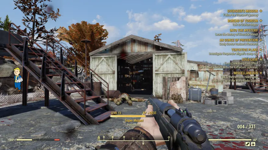 Fallout 76 speelt zich af in Virginia, je weet wel die van de Country Roads en zonder veel uitleg of introductie tot een verhaal (want die is er niet echt), stap jij uit Vault 76 in de grote, niet bewoonde, boze wereld. Je hebt in ieder geval één missie op zak en al vrij snel komen daar een aantal bij. Direct kan jij aan de bak want er is toch geen weg meer terug. In Vault 76 krijg je van elk gameplay-onderdeel een korte introductie. SPECIAL is een oude bekende en vaste prik binnen het Fallout-universum. C.A.M.P. is nieuw en stelt je in staat om in de buitenwereld op praktisch iedere plek je eigen uhm, kamp te bouwen. Wat je wellicht al is opgevallen in de Vault en anders zeker wel tot je doordringt als je het eerste dorp tegenkomt, is dat de wereld dus geheel vrij is van NPC’s. Het gehele verhaal, alle missies en sidequests komen vanuit brieven, notities, HOLO-tapes, computers, robots en uiteraard de radio. Je krijgt al snel meer missies dan overzichtelijk is en dient zelf te bepalen welke kant je opgaat. In de basis kan je dit allemaal in je eentje doen, maar al snel kom je erachter dat niet alle gebieden even makkelijk zijn of vijanden nog te sterk voor een eenmansleger zijn. Zoals een goede RPG betaamt, dien je dus te levelen door deze missies succesvol te voltooien, nieuwe gebieden te ontdekken of vijanden te doden en meer. Tot zover een algemene introductie tot vrijwel iedere RPG.