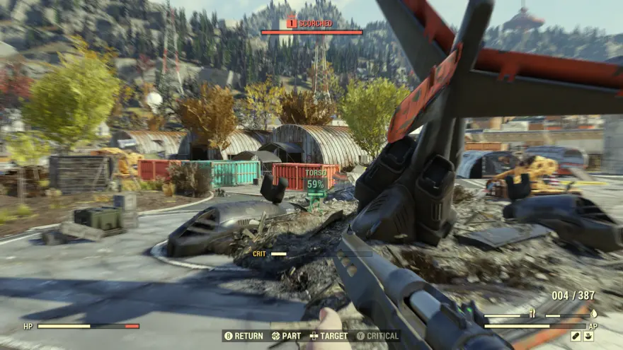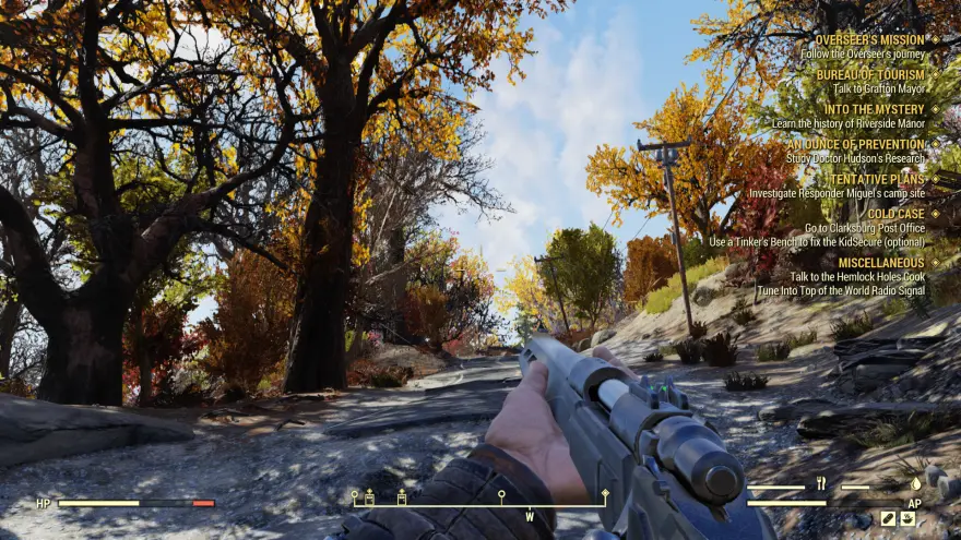 Als dit niet al niet frustrerend is, duiken er bekende Fallout-bugs op die voor een online game pure frustratie zijn. Loop je ergens op je gemak, lekker springen en verkennen, kom je vast te zitten tussen een boot en rots. Lekker joh, clipping. Wat je ook doet, je komt er niet uit. Er zit dan niets anders op dan de game opnieuw op te starten. Fijn wanneer je net in een Daily Event zit. Omdat de game zo groot is, doemt het gevaar op dat game niet alle assets goed inlaadt. De engine laadt belangrijke missie-items niet, waardoor je of moet wachten of gebieden in en uit moet lopen om verder te komen. Framedrops door het continue laden zijn ook in Fallout 76 aanwezig en werkelijk te vervloeken. Mensen die online shooters spelen, weten hoe belangrijk een lagvrije game is. Dit is meestal te wijten aan een hoge ping, maar moet je nu eens voorstellen als je eigen console niet snel genoeg is om shit te laden. Textures en zelfs hele gebouwen kunnen uit het niets opdoemen, wat vooral een ergernis is wanneer je aan het vluchten bent voor die net wat te sterke Radscorpion. Grafisch is het trouwens een game met twee gezichten. De game heeft een waanzinnige uitstraling. De mooie herfstkleuren, afgewisseld met het grauwe en dorre, worden vergezeld met fel gekleurde objecten die pas sinds deze generatie van consoles echt mogelijk werden. De zonnestralen zijn werkelijk fantastisch en leveren een fantastische ‘ambient occlusion’ op. Oftewel retedikke lichteffecten. De post apocalyptische country roads hebben er nog nooit zo mooi bijgelegen. Helaas gaat dit gepaard met lage framerates en lage dynamische resoluties, vooral merkbaar op de basis consoles.