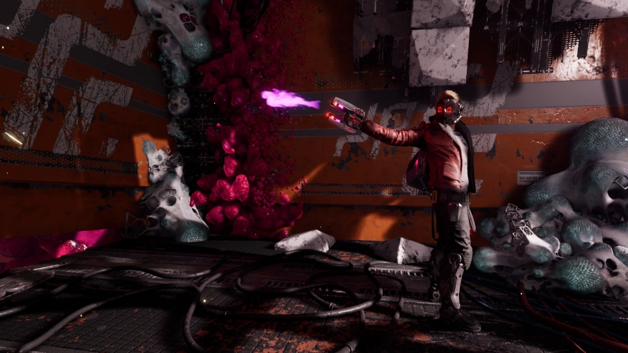 Het verhaal begint niet zoals ik verwacht had. Je ontmoet jonge Peter Quill op zijn dertiende verjaardag. Na een kort gesprek met zijn moeder krijg je de kans om zijn kamer te bekijken. Maar zodra je de kamer wilt verlaten, word je getransporteerd naar de Milano. Dit is het ruimtevoertuig van Peter aka Starlord en de andere Guardians. Je ontmoet al snel de hele crew bestaande uit Rocket, Groot, Drax en Gamora. Wat ik gelijk merkte, was dat de dynamiek tussen de verschillende personages heel natuurlijk aanvoelde en het deed me erg denken aan de films, hoewel Drax en Gamora er iets anders uit zien. Ik zal niet te veel weggeven over het verhaal, want het is natuurlijk het leukst om dit zelf te ontdekken. Zeker, omdat er erg leuke verrassingen in zitten. Wat ik wel wat jammer vond, is dat er af en toe flashbacks waren van de jonge Peter. Helaas gebeurde dit soms op vrij intense momenten in het heden. Dit haalde me wel wat uit het verhaal en ik merkte dat ik er niet altijd op zat te wachten. Dit is erg jammer, want het was wel interessant om meer informatie over Peters jeugd te krijgen. Het verhaal in het heden bleef mij steeds verrassen. Het is een vrij lineair verhaal en het voelde erg natuurlijk aan. Ik merkte dat ik steeds door wilde spelen om erachter te komen wat er ging gebeuren. Hoewel het een nieuw verhaal is, is het erg in lijn is met hoe we de Guardians of the Galaxy kennen. Naar binnen met een plan, naar buiten met chaos en hopen dat het goed komt.