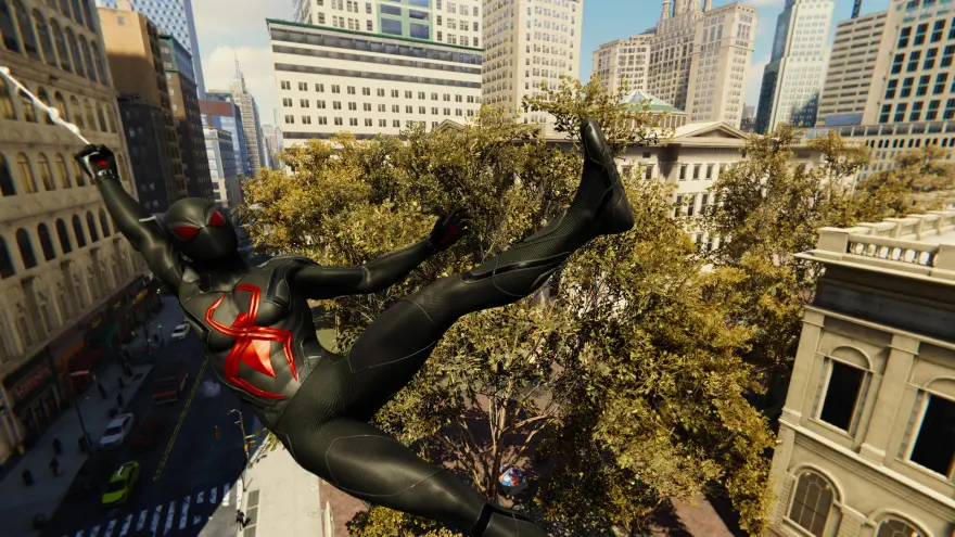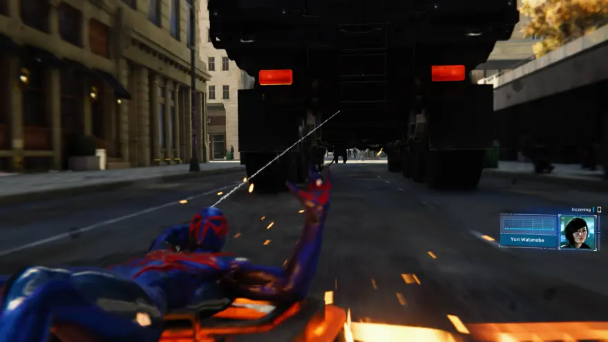 Bovenstaande opdrachten werk je gelukkig niet voor niets af. Voor iedere missie die je succesvol weet te volbrengen krijg je een aantal tokens. Ieder soort missie geeft je een andere token ter beloning. Zo krijg je voor het voorkomen van street crimes Crime Tokens en voor het doen van research Research Tokens. Al die tokens geef je weer uit aan upgrades van je gadgets en aan nieuwe suits. Insomniac is all-out gegaan met deze suits want er zitten er echt flink wat in waarbij sommige lekker hoog op de absurditeitsschaal komen. Daarbij zijn deze suits voorzien van bepaalde Suit Powers en zijn er mods te installeren. Wat ik vooral tof vind van de andere suits, is dat je ze te allen tijde aan hebt. Zo zie je ze niet alleen tijdens het spelen, maar heb je ze ook aan tijdens de cutscenes. Overigens zien die cutscenes, en daarbij de hele game, er fantastisch uit. Er is zoveel oog voor detail en Insomniac laat op vrijwel geen enkel gebied de bal vallen. Oké, af en toe doen de NPC’s iets aparts, maar afgezien daarvan streeft Insomniac perfectie na.