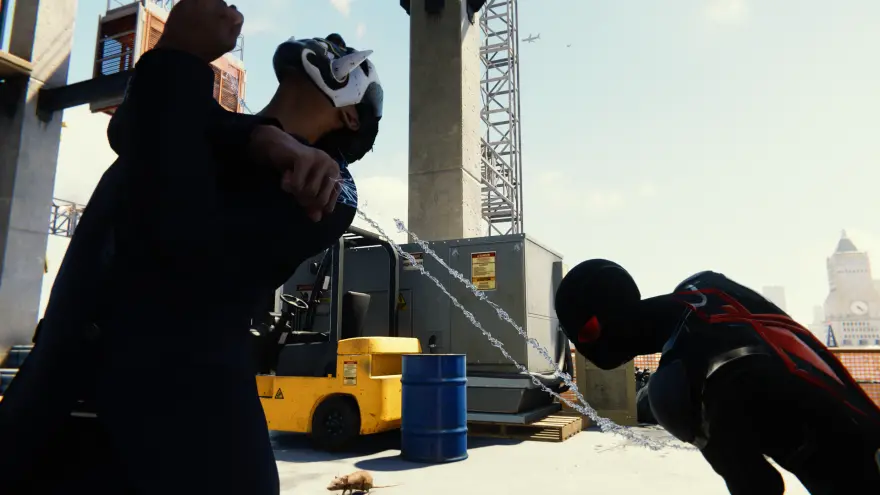 Je bent natuurlijk een overgroot deel van de game kwijt aan het bevechten van diverse tegenstanders. Dat vechten verloopt uitermate soepel. Met een paar knoppen ben je in staat om de meest adembenemende combo’s aan elkaar te rijgen. Met de cirkel-toets ontwijk je bijvoorbeeld aanvallen, met vierkantje deel je rake klappen uit, met driehoekje gebruik je je web om je ergens naar toe te trekken. Tot slot maak je met R1 gebruik van een van de vele gadgets. Uit het verleden blijkt wel dat Insomniac Games meester van de gadgets is, kijk maar naar Ratchet & Clank. Met Spider-Man is dat niet anders. Je start met een vrij basic webshooter, maar na een aantal investeringen heb je beschikking over trip mines, een spider bot, een webbom en veel meer gekkigheid. Helaas vergeet je de gadgets nog weleens tijdens alle hectiek van het knokken, maar wil je echt goed worden, dan adviseer ik om deze zeker te gebruiken. Tijdens de stealth segmenten is dat overigens een heel ander verhaal. Verstandige spelers kiezen namelijk niet altijd voor de frontale aanval, maar gaan zorgvuldig te werk en lokken de vijanden in de val. Het geeft veel voldoening wanneer je onopgemerkt twintig man te grazen heb genomen.