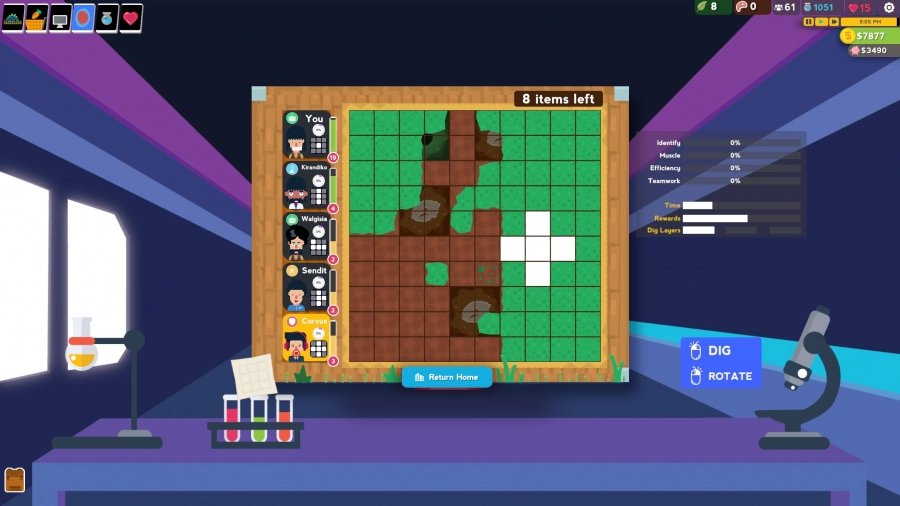 Wat parkasaurus dan wel een stukje beter doet, is de progressie van je park. Ja, het is natuurlijk de bedoeling dat je een zo groot, mooi en leuk mogelijk park maakt en er ook nog eens bakken met geld mee verdient, maar denk je ook even aan die arme dino's? In Parkasaurus word je namelijk aan het einde van elke dag beloond met hartjes. Wanneer je dinosaurussen gelukkig zijn, verdien je hartjes en deze kun je vervolgens weer spenderen om nieuwe voorwerpen voor je dino's vrij te spelen om ze nog gelukkiger te maken. Daarnaast kun je, wanneer je een wetenschapper inhuurt, ook Science-punten verdienen. Ook deze kun je inruilen tegen nieuwe voorwerpen om je park mee op te leuken. Hartjes en Science-punten zijn ook van cruciaal belang om nieuwe dino's vrij te spelen. Wanneer je genoeg hartjes en Science-punten hebt verzameld, kun je namelijk je team van personeelsleden terug de tijd in sturen om te graven naar fossielen en sporen van dino's. Dat graven naar sporen en fossielen gebeurt in een soort van puzzel minigame, waardoor je wel een beetje het gevoel hebt alsof je er nog echt moeite voor hebt moeten doen. Heb je genoeg sporen en fossielen van een bepaalde soort gevonden, dan kun je er een ei van laten maken die je vervolgens weer in je park kunt laten uitkomen.