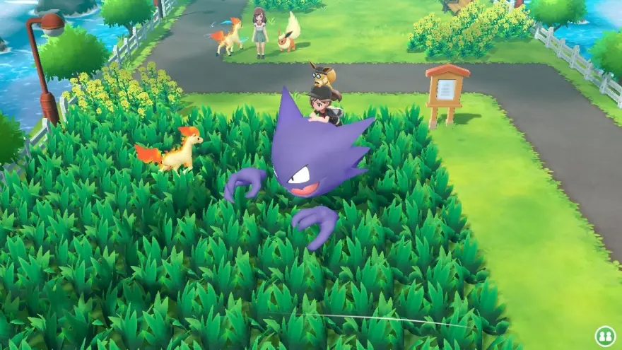 De manier waarop je Pokémon in het wild kunt vangen is echter niet het enige dat is vernieuwd ten opzichte van de andere Pokémon-games. Voor het eerst sinds de serie is uitgekomen, is het namelijk niet meer mogelijk om willekeurig Pokémon tegen te komen in de wereld. In de oudere games kwam je namelijk willekeurig Pokémon tegen als je door het gras, door een grot of over het water reisde. In Pokémon Let's Go is dat echter verleden tijd en kun je de Pokémon gewoon zien rondlopen. Je kunt er nu dus zelf voor kiezen of je op een Pokémon afstapt om deze te vangen of hem toch liever wilt mijden. Dit zorgt er niet niet voor dat de wereld er een stuk levendiger uitziet met allemaal kleurrijke wezens die er rondlopen, maar het eindeloos wegrennen van willekeurige Pokémon die je keer op keer weer lastigvallen is nu ook niet meer aan de orde. Hoewel het vechten tegen wilde Pokémon niet meer in de game zit, kun je uiteraard nog wel Pokémon-gevechten houden tegen andere trainers. Ook moet je nog steeds acht Gymleiders verslaan om hun badges te bemachtigen. In Pokémon: Let's Go is het wel zo dat je bij de meeste gyms pas aan het gevecht mag deelnemen wanneer je aan een bepaalde voorwaarde voldoet. Zo moet je bijvoorbeeld om de eerste leider, Brock, te mogen uitdagen een Pokémon van het type water of gras bij je hebben. Een leuke nieuwe toevoeging aan de Pokémon Gyms is dat er nu publiek in de Gyms zitten die naar de Pokémon-gevechten komen kijken. Zo voelt het toch allemaal een stuk spannender.