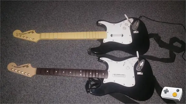 Mocht je al een collectie aan muziekinstrumenten hebben, dan is het goed om te weten dat de meeste van deze instrumenten gewoon zullen werken in Rock Band 4. PlayStation 3-instrumenten werken dus gewoon op de PlayStation 4, en Xbox 360-instrumenten (weliswaar met een adapter) op de Xbox One. Nu wil het zo zijn dat ik al mijn instrumenten voor de Xbox 360 heb aangeschaft en ik een reviewexemplaar voor de PlayStation 4 heb gekregen. Gelukkig was de uitgever zo aardig geweest om mij een nieuwe Rock Band 4-gitaar voor de PlayStation 4 toe te sturen, zodat ik alsnog aan de slag kon.