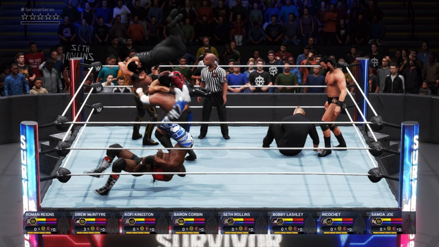 Ik ben natuurlijk een beginner, maar zelfs bij de meeste fighting games kun je in ieder geval een aantal moves eruit gooien en even de illusie hebben dat je enige progressie maakt, voordat je klappen krijgt. Bij WWE 2K20 is het een statisch geheel waar het lijkt of je input weinig invloed heeft op het resultaat. Zelfs de keuze uit verschillende categorieën in vechtstijl of type vechter zoals Luchador verandert de gameplay niet echt. Jammer, want ik had echt zin om los te gaan met alle verschillende moves. De hoeveelheid aan verschillende modi is leuk, maar als er geen wezenlijk verschil te bespeuren is, wat voegt het dan toe? Natuurlijk is de dynamiek met One on One anders dan als je met acht man in de ring staat die allemaal willen winnen, maar de gameplay is overal hetzelfde. Je pakt of wordt nu gepakt door niet één, maar meerdere spelers. Het neemt de motivatie een beetje weg om alle mogelijkheden van alle modi uit te proberen.