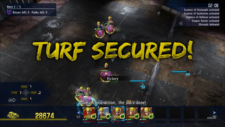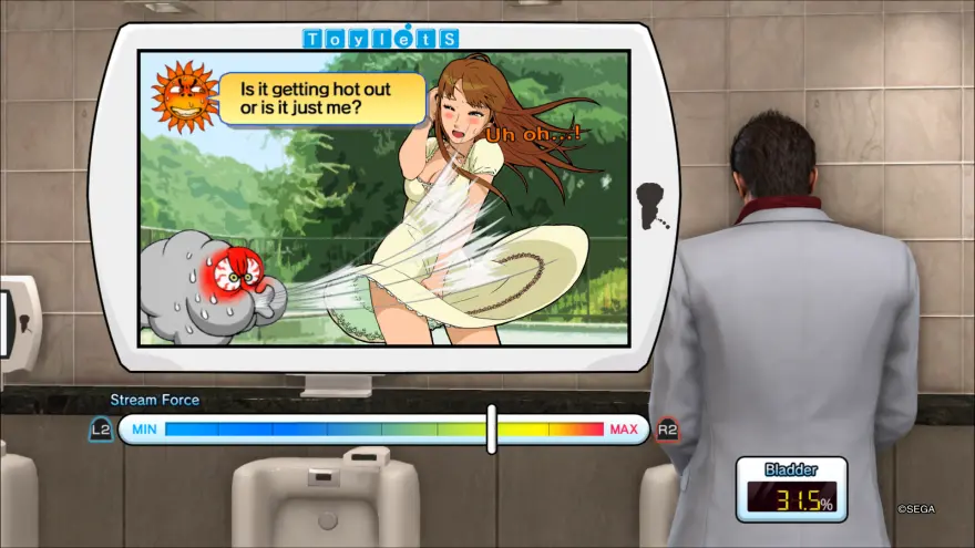 Dat is echter niet alles wat meegenomen wordt uit Yakuza 6 en Zero. Ook op het gebied van mini-games en side stories wordt flink wat “geleend”. Zo maken de Cabaret-missies uit Yakuza 0 en de Clan Creator uit Yakuza 6 een terugkeer. Het is weliswaar niets nieuws onder the land of the rising sun, maar deze aanvullingen bieden een luchtige onderbreking tijdens het doorlopen van het aanzienlijk minder luchtige verhaal. Overigens heeft de Clan Creator wel een flinke overhaul gehad. Waar je voorheen voornamelijk aan het aanvallen was, ben je dit keer voornamelijk aan het verdedigen. Je moet met een handjevol strijders weerstand bieden tegen hordes aan tegenstanders. Een beetje de omgekeerde wereld dus. Daarbij zit er weer meer dan genoeg gekkigheid in de game. Zo help je een man op de plee aan schoon ondergoed, sla je oplichters de hersenpan in en ga je naar de arcadehallen voor een potje Virtua Fighter 2.1. Overigens moet ik bekennen dat de toevoeging van Toylets voor flink wat giecheltjes hebben gezorgd. Ja, ook even pissen is nu een mini-game! Overigens is er ook nog een eervolle vermelding voor ieders favoriete maniak, Goro Majima. De nutcase keert weer terug in een eigen verhaal dat zich simultaan afspeelt met Kiryu’s verhaal. Een vermakelijke toevoeging die wederom wat meer karakter aan een al charismatisch personage weet toe te voegen.