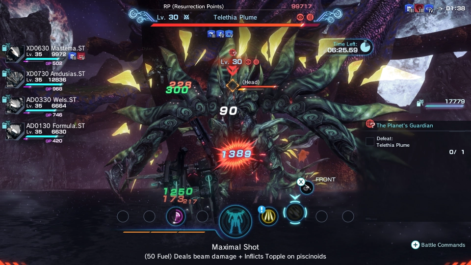Het gevechtssysteem in Xenoblade Chronicles X doet denken aan het gevechtssysteem die we van de andere XC-games gewend zijn, met automatische aanvallen en Arts die je handmatig activeert. Een belangrijke toevoeging aan de remake is de Quick Cooldown-mechaniek, waarmee je skills sneller opnieuw kunt gebruiken als je goed timet. Daarnaast zijn er nog een breed scala aan andere mechanics waar je rekening mee moet houden tijdens gevechten. Zo zijn er status effecten en debuffs, zoals Topple, Stun en Launch. Dit zijn effecten die je op verschillende manieren kunt toepassen op je vijanden, maar andersom kunnen je vijanden je dit ook aandoen. Daarnaast zijn er Soul Voices en Soul Challenges, die in specifieke situaties tijdens gevechten worden geactiveerd. Je krijgt dan een quick time event die je uit moet voeren om het bijbehorende effect te ontvangen. Dit voegt extra strategische diepgang toe aan de gevechten en ze zijn dan ook zeker uitdagend. Toch kan het systeem overweldigend zijn, vooral door de hoeveelheid beschikbare Arts en de complexe mechanics en interacties tussen jouw personage en je partyleden die niet altijd even goed worden uitgelegd.